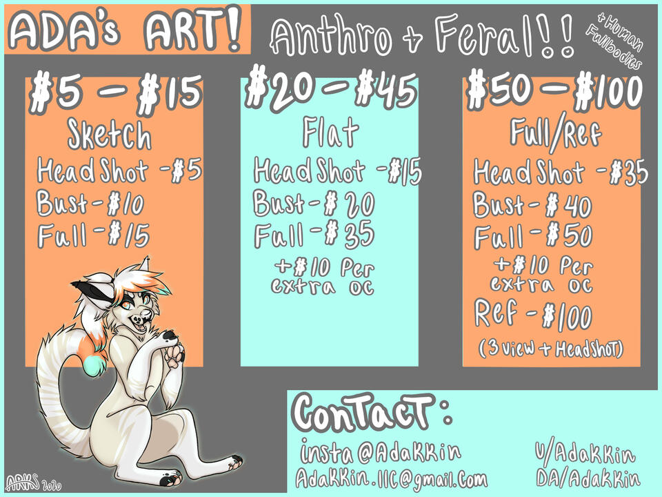2.2. If you link to a gallery of your character’s artwork, design interpretations may be inconsistent between images and lessen the ability to accurately draw your character. Shading on potential pieces will also play a part in this.SECTION IV. WILL/WON'T DRAW1. Below is a general guideline for what artwork Adakkin is willing to produce. Please keep art style in mind when ordering
